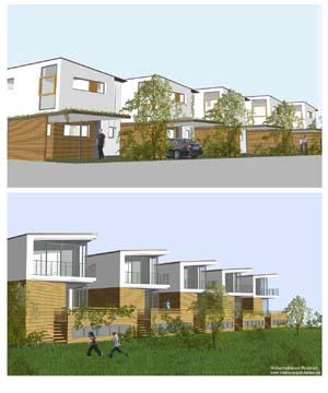 ![]() Geplante Reihenhäuser entlang der Dr.-Konrad-Baldauf-Straße | ![]() |
